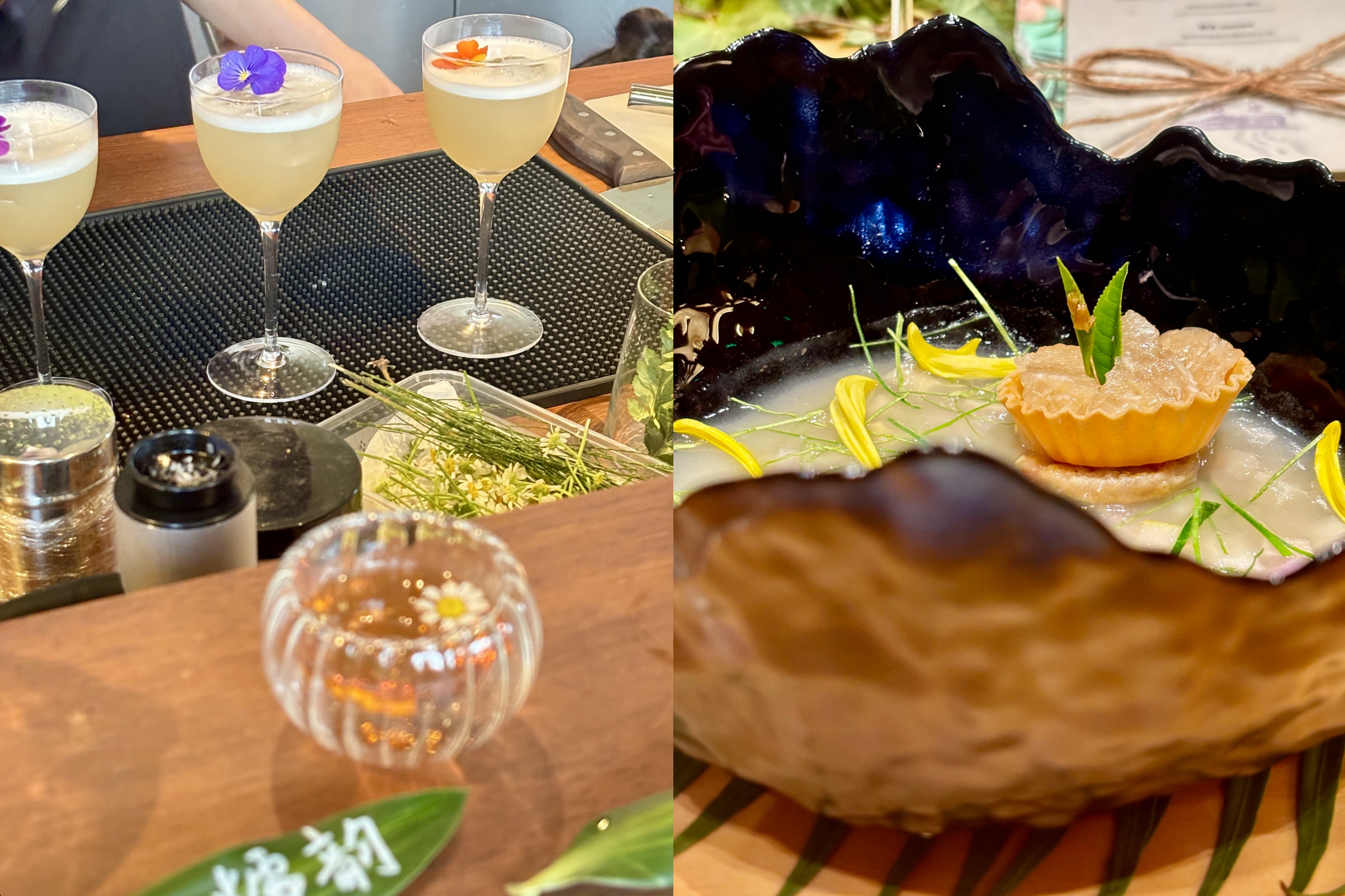酒单里有几款会让人记住的味道。“东江·糯韵”使用当地米酒作为基酒,口感偏甜且带有谷物香气;“梅香·碎玉”则以梅干菜叶入酒,虽是烈酒,入口却并不辛辣,反而更为圆润。