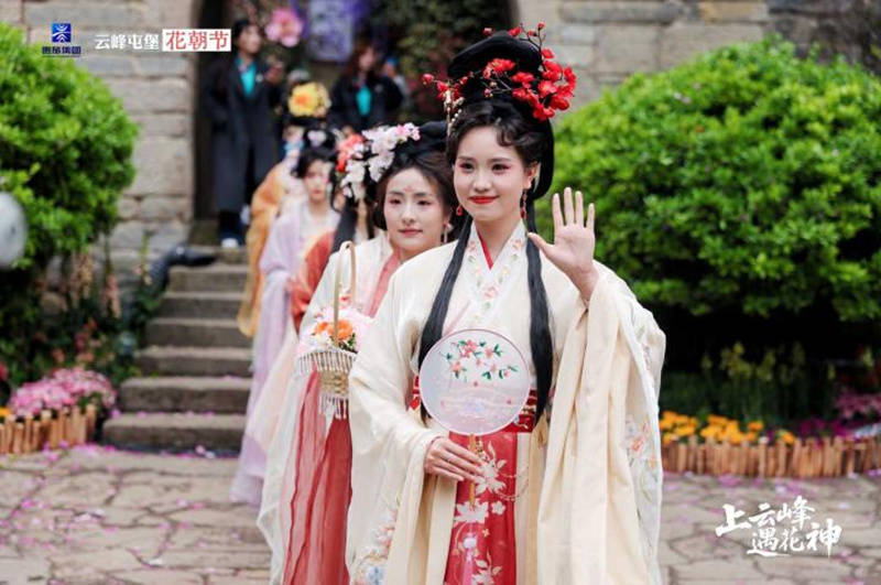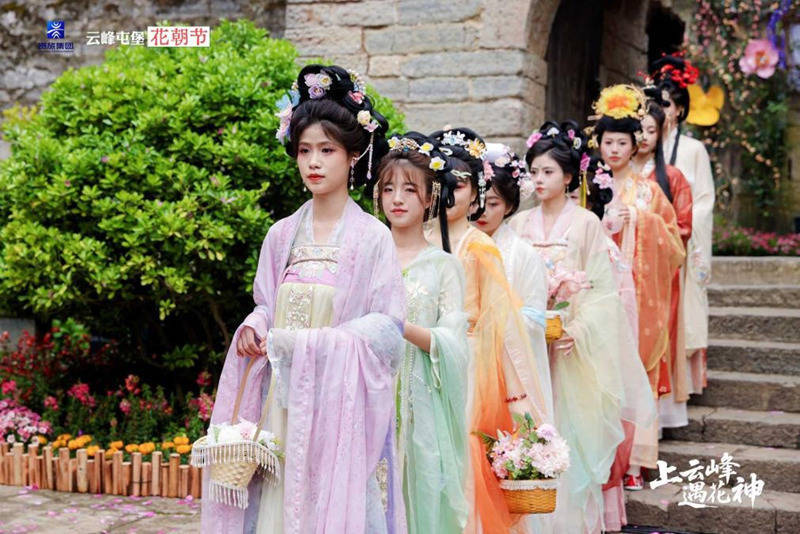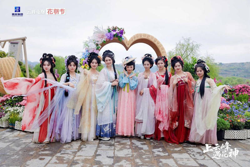 活动当天,花神归位大典举行。改编屯堡地戏《杨家将・护花》气势开场,再现军屯护花、守寨护民的忠义精神;十二花神依次登场,蜀葵花神主祭,众花神行祭花祈福之礼,祈愿风调雨顺、国泰民安。随着屯门大开、花瓣纷飞,正式开启 “上云峰・遇花神” 沉浸式游园。